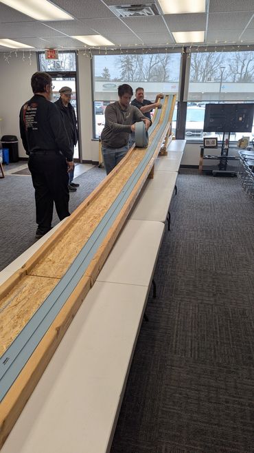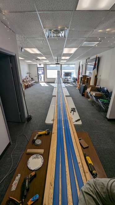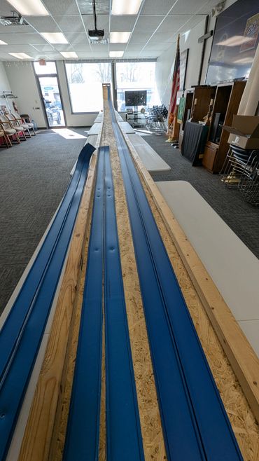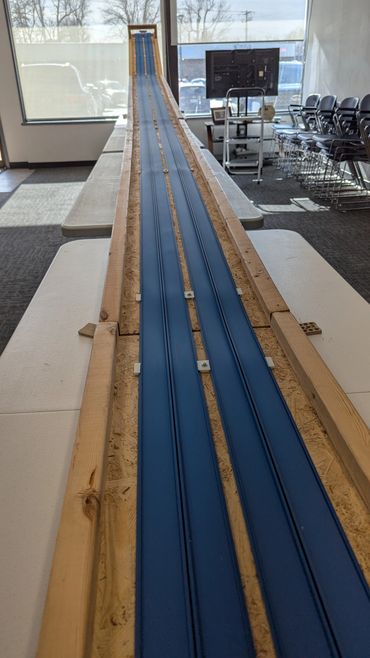 Our current track is now 19 years old. It has served us well over the years but it is now time to replace it. The 50 foot rolls that were used to make the track in 2006 have not been made in nearly 20 years. This sent us on a mission to find a suitable replacement. We are thrilled to let you know that we did find a replacement. Not only is it made in the USA, it is made right here in Iowa, just up HWY 151 in Anamosa. You can find out more about the new track at https://www.blutrack.com/